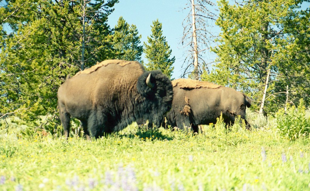 As the day turned to late afternoon we decided to continue back to Old Faithful, but as we passed through Hayden Valley we saw huge herds of bison and stopped a couple of times to look and take pictures. We continued along the western shore of Yellowstone Lake, which is supposed to be prime moose territory. We drove slow and watched the woods more than the road, but alas, no moose.