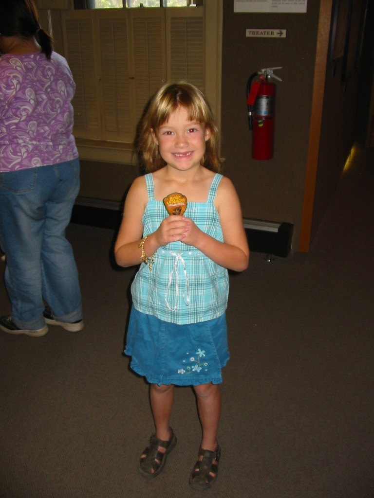 Our first stop of the day was the visitor center at Mammoth Hot Springs. Delaney turned in her Junior Ranger paperwork and became an Official Junior Ranger of Yellowstone National Park. She worked very hard on the worksheets and hiking and was very proud to get her patch – as were her Mom and Dad.