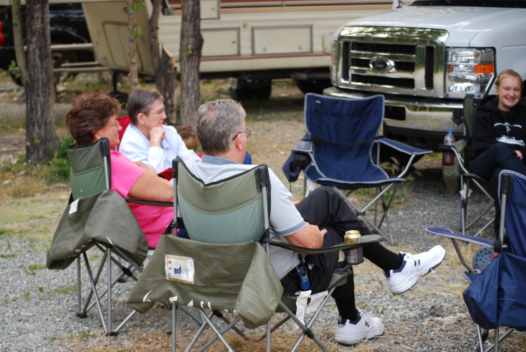 The midnight sun really took some getting used to. That evening we were sitting around the campfire talking, laughing, and having a grand old time when I noticed no one else was out and about. I then saw a few faces popping up in windows of other RVs giving us the “evil eye”. I then looked at my watch and realized it was after 10:00 pm, but it wasn’t even dusk yet! Once we figured it out we quieted down, went in the RVs, and tried to sleep. Between the light and the excitement over finally being in Alaska it wasn’t easy!