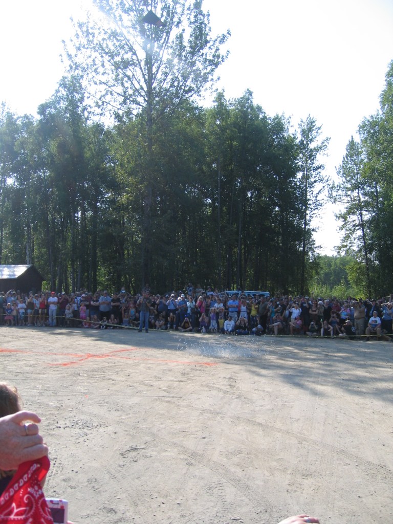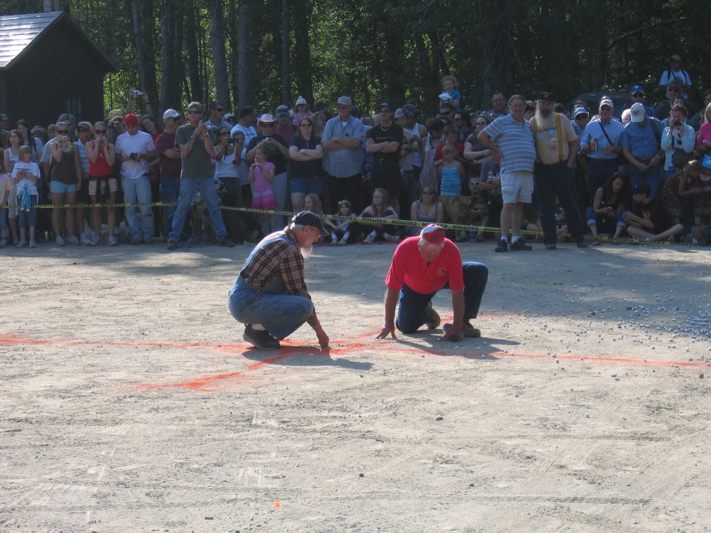 After flying came the main event – The Moose Dropping Dropping. The entire festival went over to the VFW to watch the drop. A sack with the glazed and numbered moose turds was lifted high in the air with a crane and carefully positioned over the target painted on the ground. The rip cord was pulled and each person’s chances at riches, fame, and glory rode on their numbered turd all the way to the ground. At least I assume the winners achieved riches, fame, and glory. I don’t know because no one in our group won anything, but it was a great experience. Again, it doesn’t get any better than small town America.