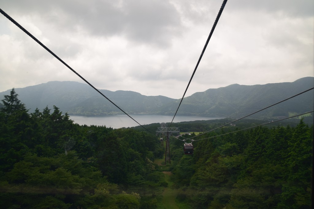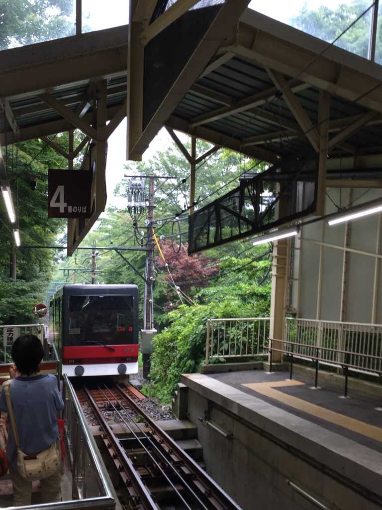 We left Owakudani and continued on the Ropeway to the top of the mountain where we took the Cable Car (train pulled by cables, San Francisco style) down to the main train station. The railway has three switchbacks going down the mountain, but it is too steep for the cable car to make a turn. So the car heads into a spur then out in the opposite direction.