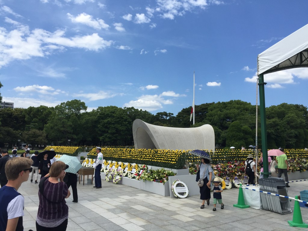 Our plan was to visit the Peace Park first and we stuck with that plan. We were a bit worried that as Americans we would feel unwelcome at the park with the anniversary ceremonies and remembrances taking place, but those worries were completely unfounded. There were a lot of people in the park and a lot of activities going on. The celebrations were respectful but not overly somber. It was sobering and moving to be there on that day, but we never felt any animosity nor did we feel unwelcome. Everything was oriented around peace. We could tell that is the culture of Hiroshima – not just on Memorial Day, but every day. Peace.
