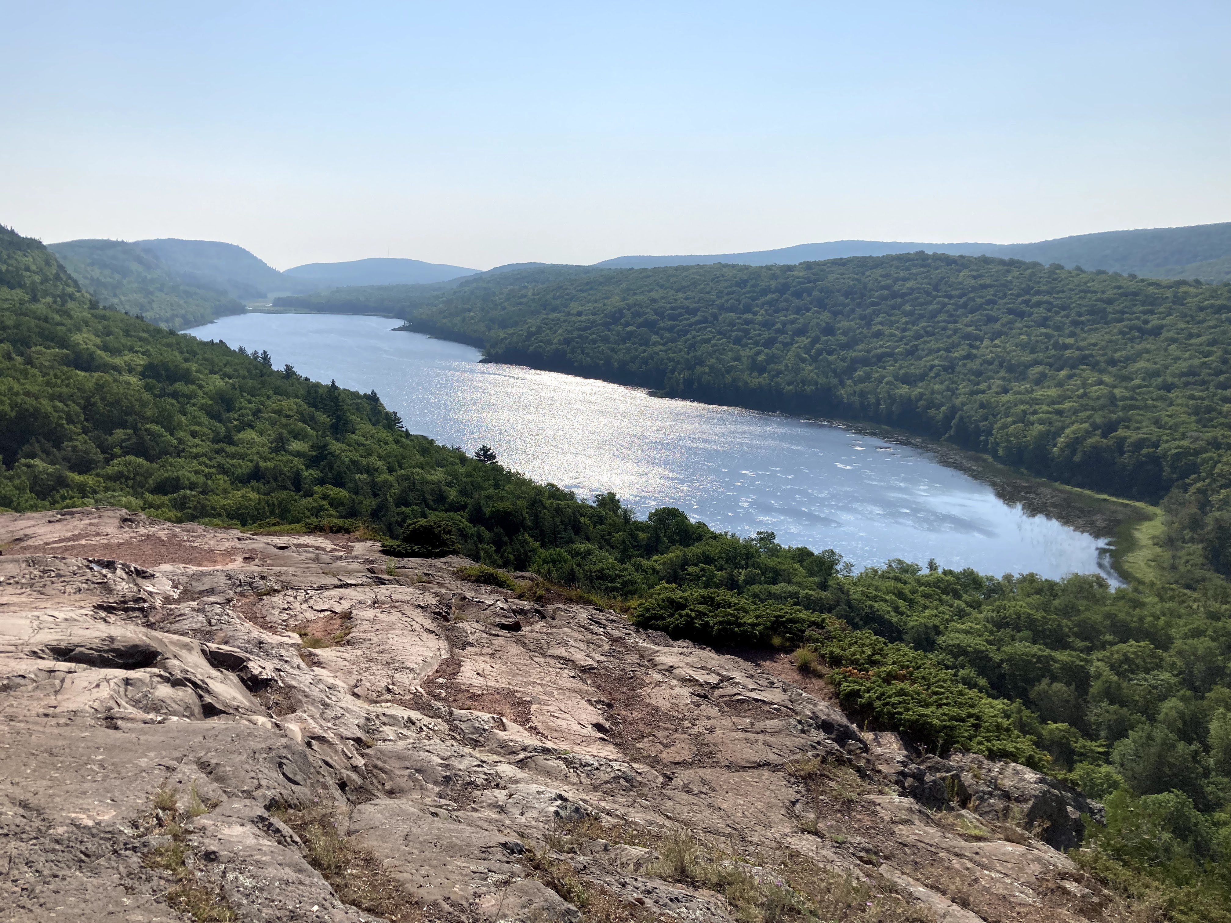 The trail head was pretty close to the Lake of the Clouds overlook, so we drove up to take a look. It is a lake that is nestled among the peaks of the Porkies and the overlook provides a spectacular view. There is a Lake of the Clouds cabin. Maybe next summer? Whether at Lake of the Clouds or somewhere else, we will be back at the Porkies in the future. We only saw a small sliver of the 60,000 acres – there is much more to explore.