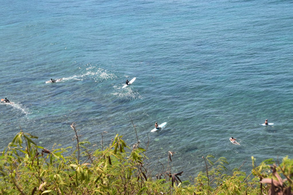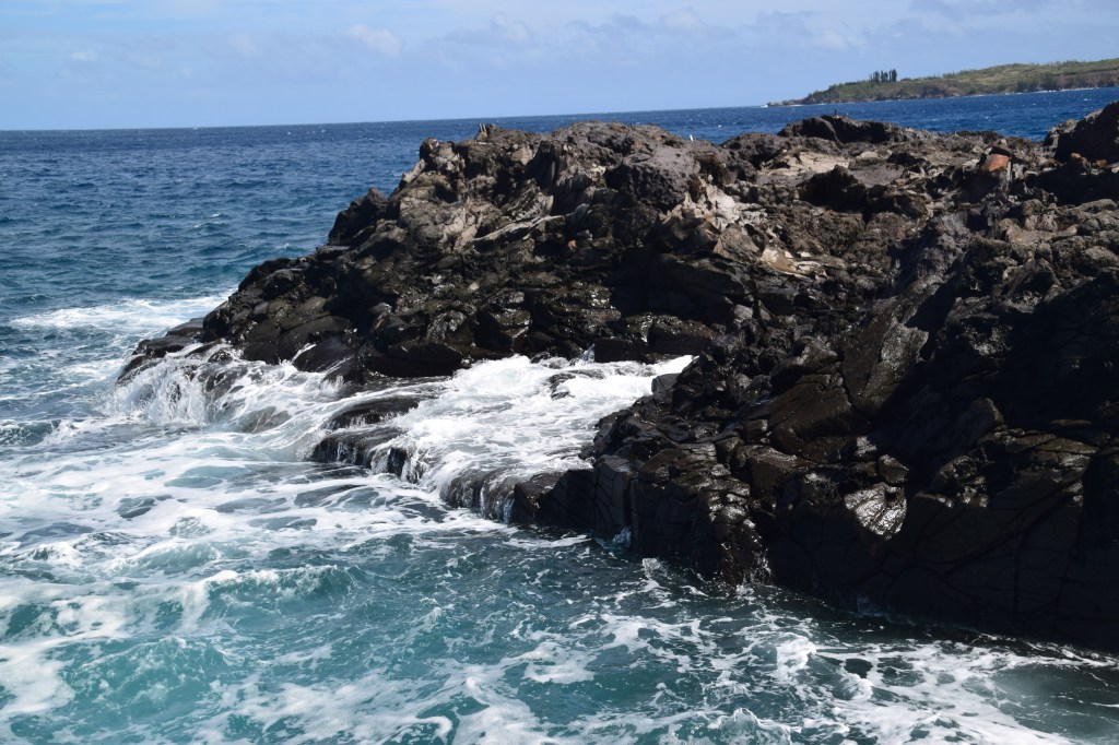 This entire trip was restful and lazy, and we got deeper into “Island Time” as the trip went on. We drove up the coast a little and walked out to a point called Dragon’s Teeth. We went on a little farther to an overlook over a cove and watched surfers for a while. Then a little further to see a blowhole, where the waves come in and blow water out of the hole. It was a great sight, made better by the macadamia nut shortbread cookies we bought from a vendor in the parking lot.