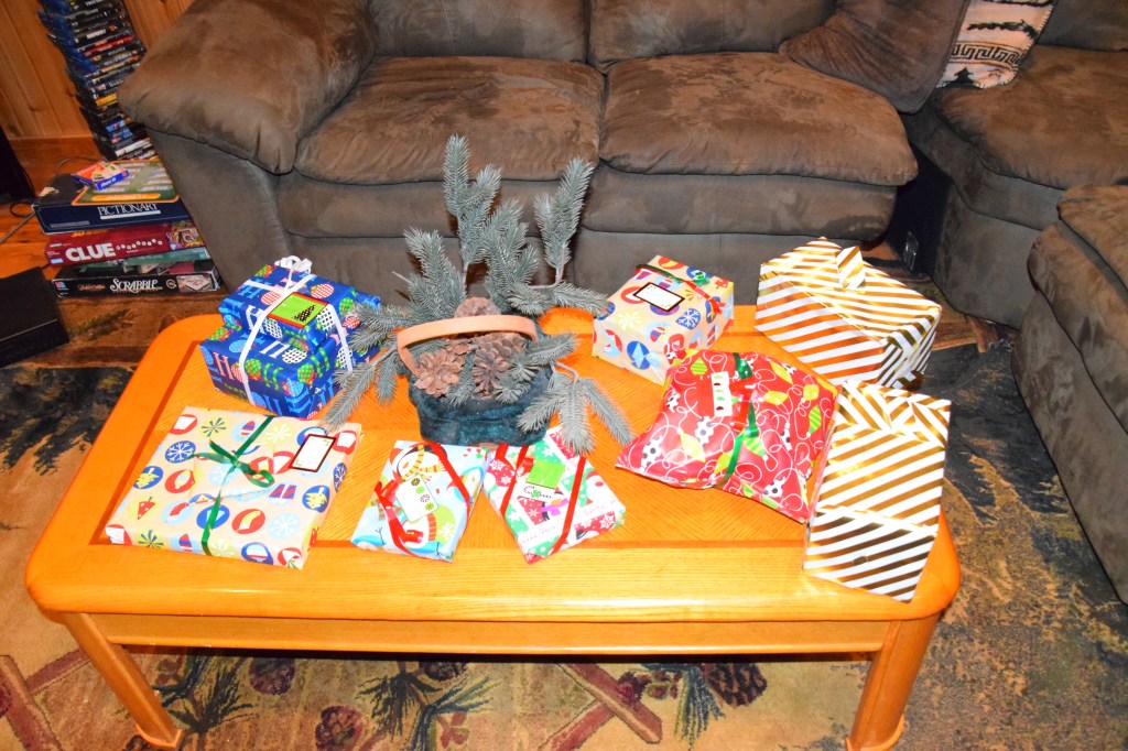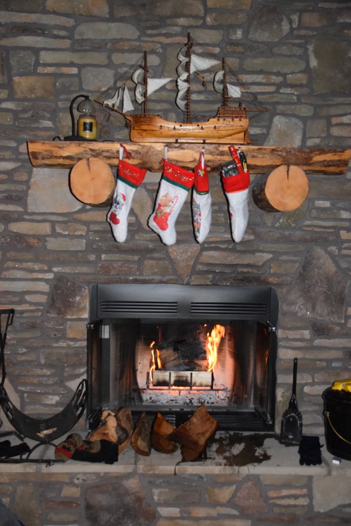 Christmas morning brought a white winter wonderland. We ended up with a total of 14 inches of snow from the storm. We made a pot of coffee and built a fire in the fireplace to enjoy Christmas morning. We brought stockings which had been filled overnight and had a handful of small Christmas presents which we opened in front of the fire.