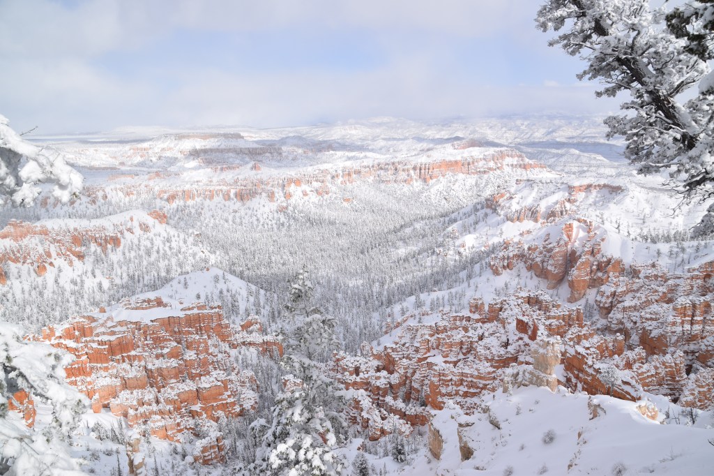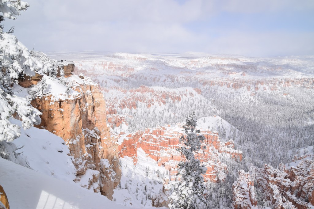 Bryce Canyon National Park was open, but only the first three miles of road into the park were clear. That was enough to take in some incredible sights. The trails were too snowy for hiking, but we stopped at every overlook we could get to and enjoyed the views of the snow-blanketed canyon.