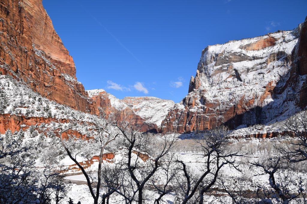 We returned to Zion on Monday, and what a difference fourteen inches of snow can make! The same views we saw on Friday were now blanketed in white. The day was clear and bright, which made the snow gleam all the more.