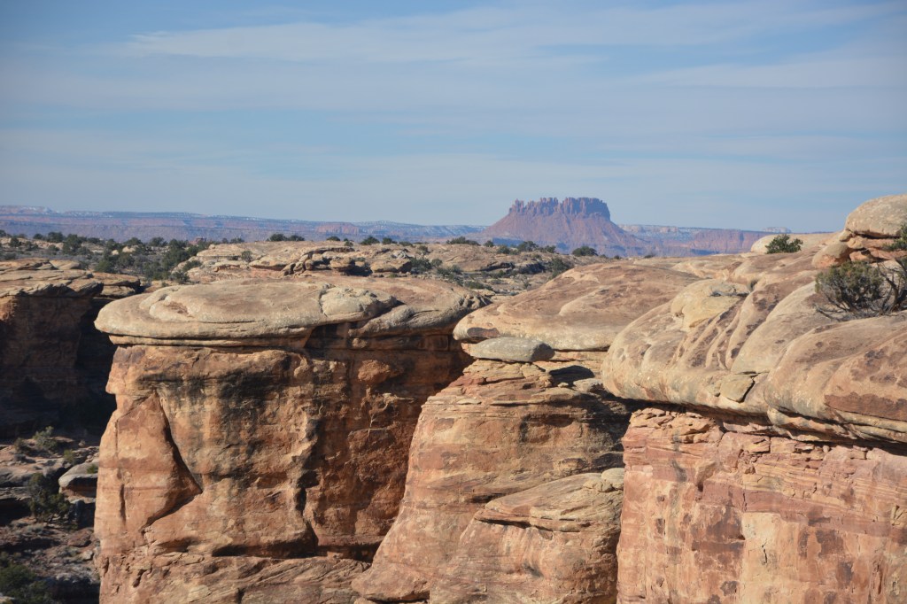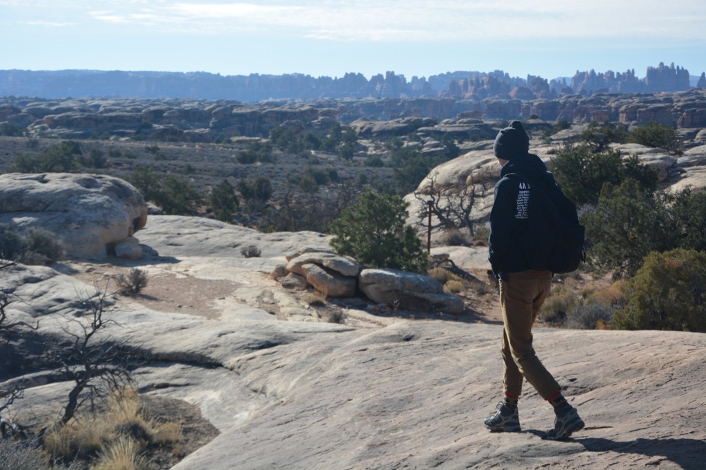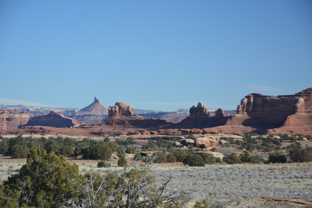 This would be our last day of outdoor activity for the trip, and it was a great one. We visited Islands in the Sky the day before, where we hiked along the rim of the canyon looking down into its vastness below. The Needles are colorful rock spire formations in the bottom of the canyon. From the edge of Islands in the Sky they do appear as needles sticking up out of the canyon floor.