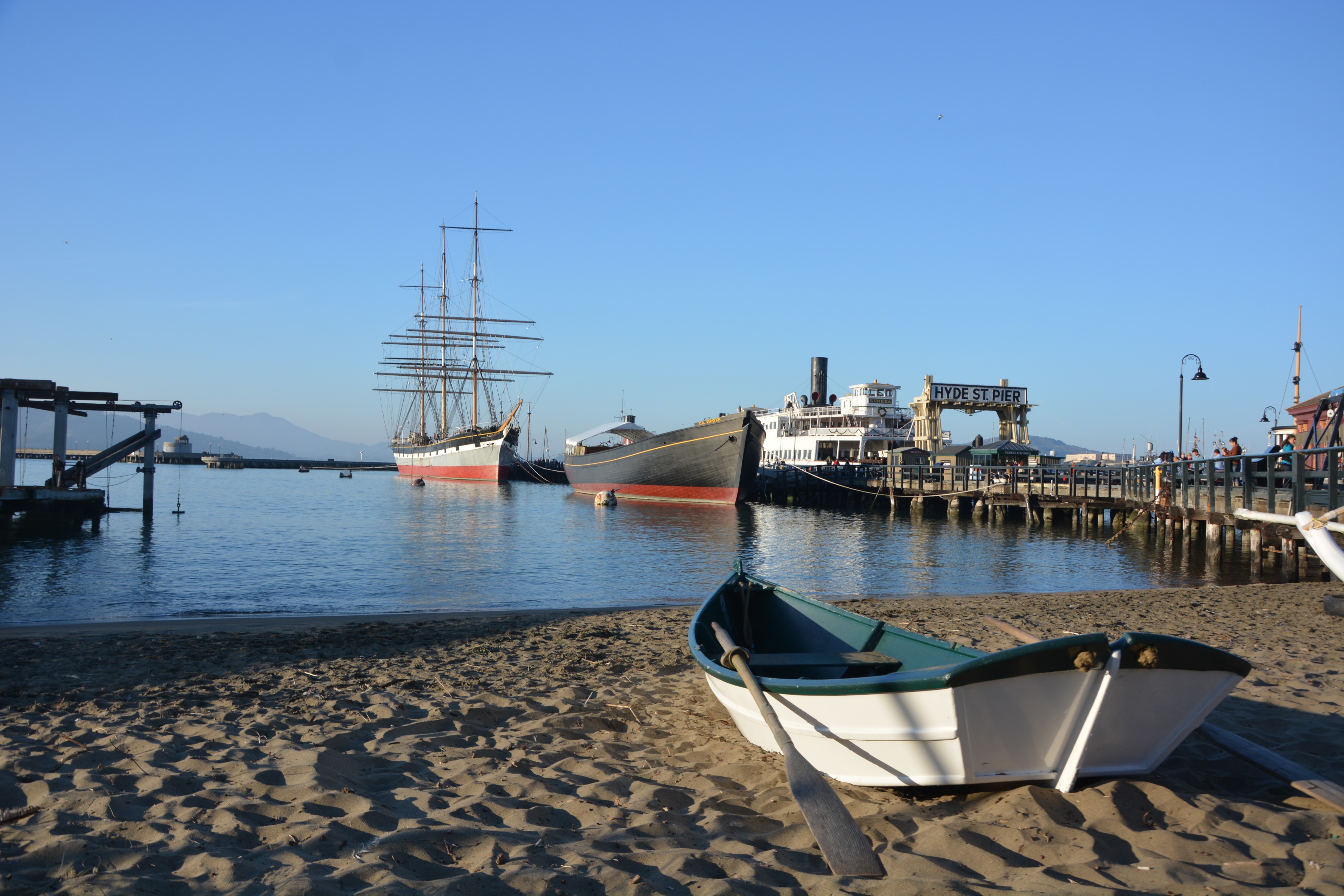 All that quacking worked up an appetite, so our next stop was a San Francisco classic: soup in a sourdough bread bowl. Aaron and I opted for clam chowder from a crab stand, while the girls chose tomato soup from a bakery. We reconvened under the iconic Fisherman’s Wharf sign, where we devoured our soups—and the bowls.
