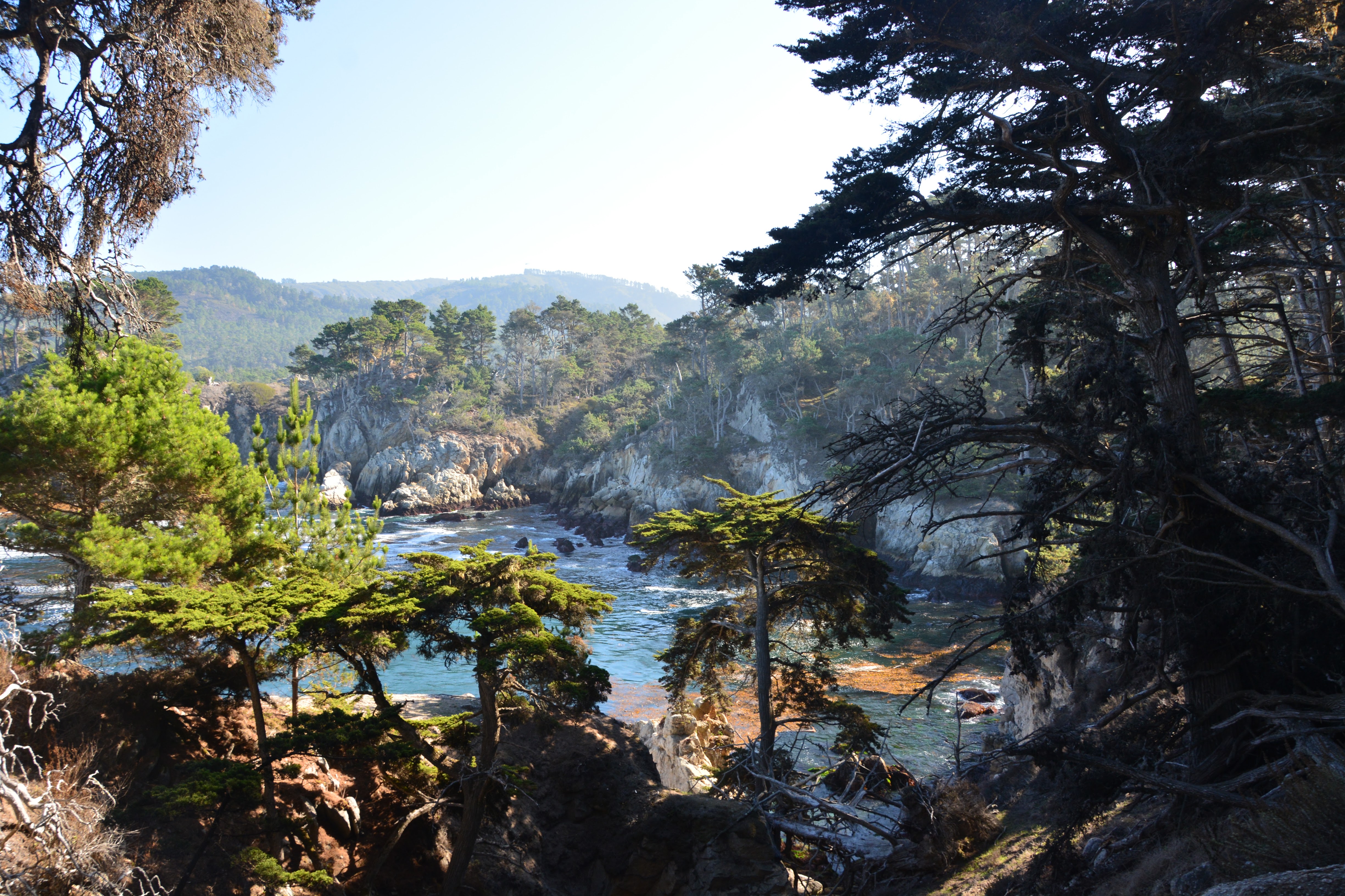 A family member suggested we stop at Point Lobos State Park for hiking and views, and at Nepenthe in Big Sur for lunch. So, after exiting the 17-Mile Drive we did both — and both were excellent recommendations. At Point Lobos, we hiked a good bit and were treated to sightings of seals, a sea otter up close, and whales offshore. Nepenthe, perched above a wooded canyon with a stunning ocean backdrop, was a breathtaking setting for a meal. The food was fantastic, and while we had to wait for a table, with views like that, we didn’t mind.
