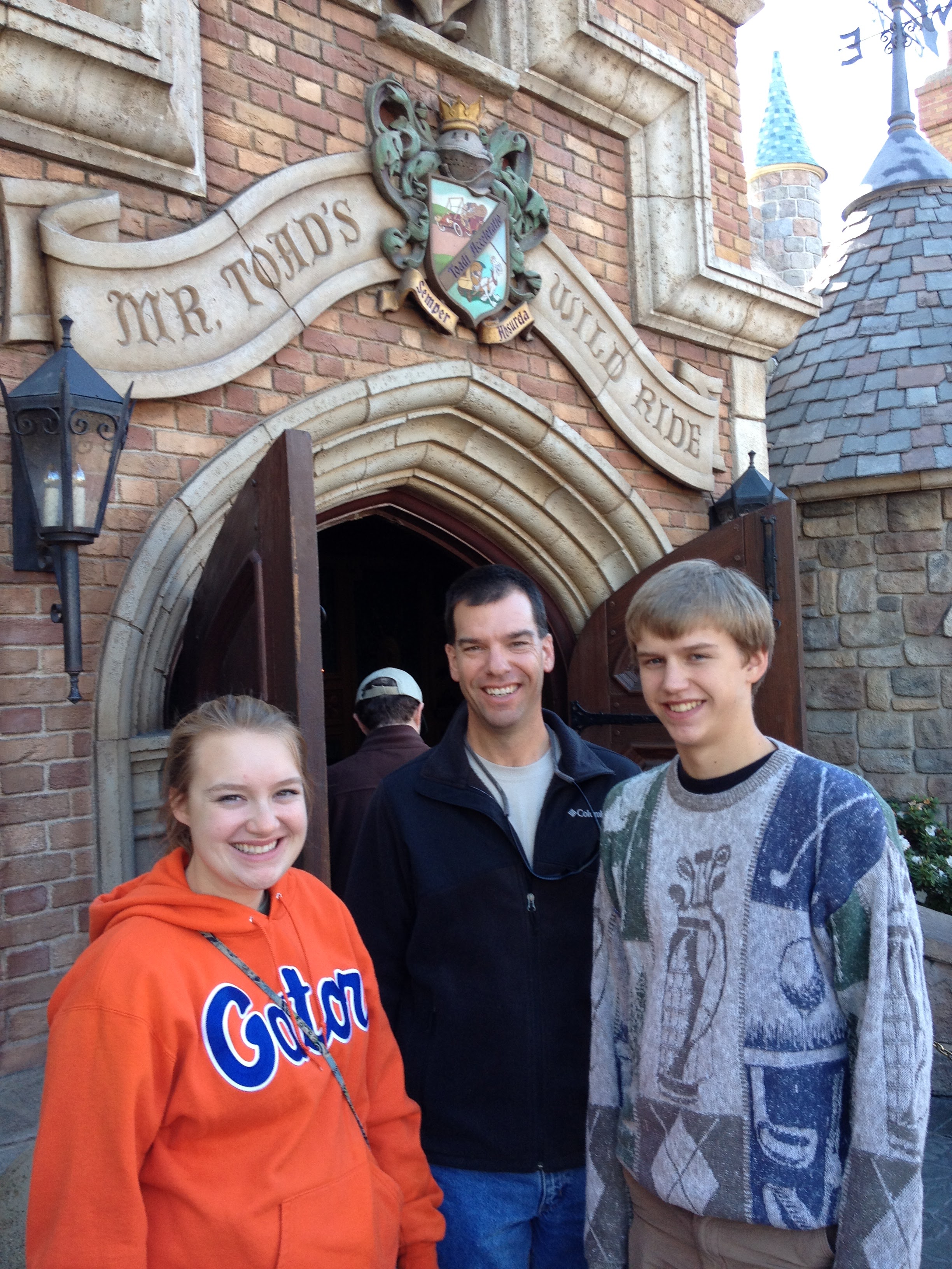 One of the day’s highlights was Mr. Toad’s Wild Ride. This was an original attraction at both Disneyland and the Magic Kingdom, and a childhood favorite of mine and Chrissy’s. But in 1998, Disney closed Mr. Toad in Florida and replaced it with a Winnie the Pooh ride (which, while charming, is not Mr. Toad). Aaron never had the chance to ride Mr. Toad in Florida, and Delaney had only experienced it as a toddler. So when we all rode it together at Disneyland, the kids were good sports about humoring Mom and Dad’s nostalgia.